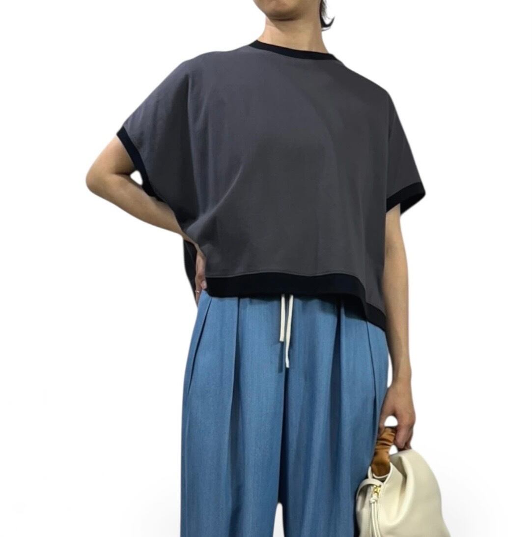 ワイドパンツやハイウエストボトムスと相性がよくスタイルアップ見えするデザイン。