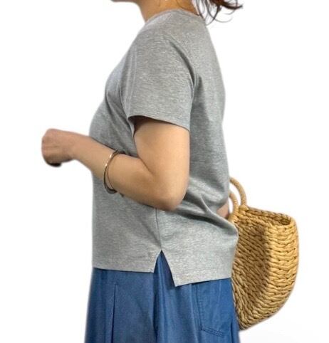 ロゴのフォントやシルエットですっきりとした印象に見せつつ、どんなボトムともバランス良く合わせやすいのが魅力。