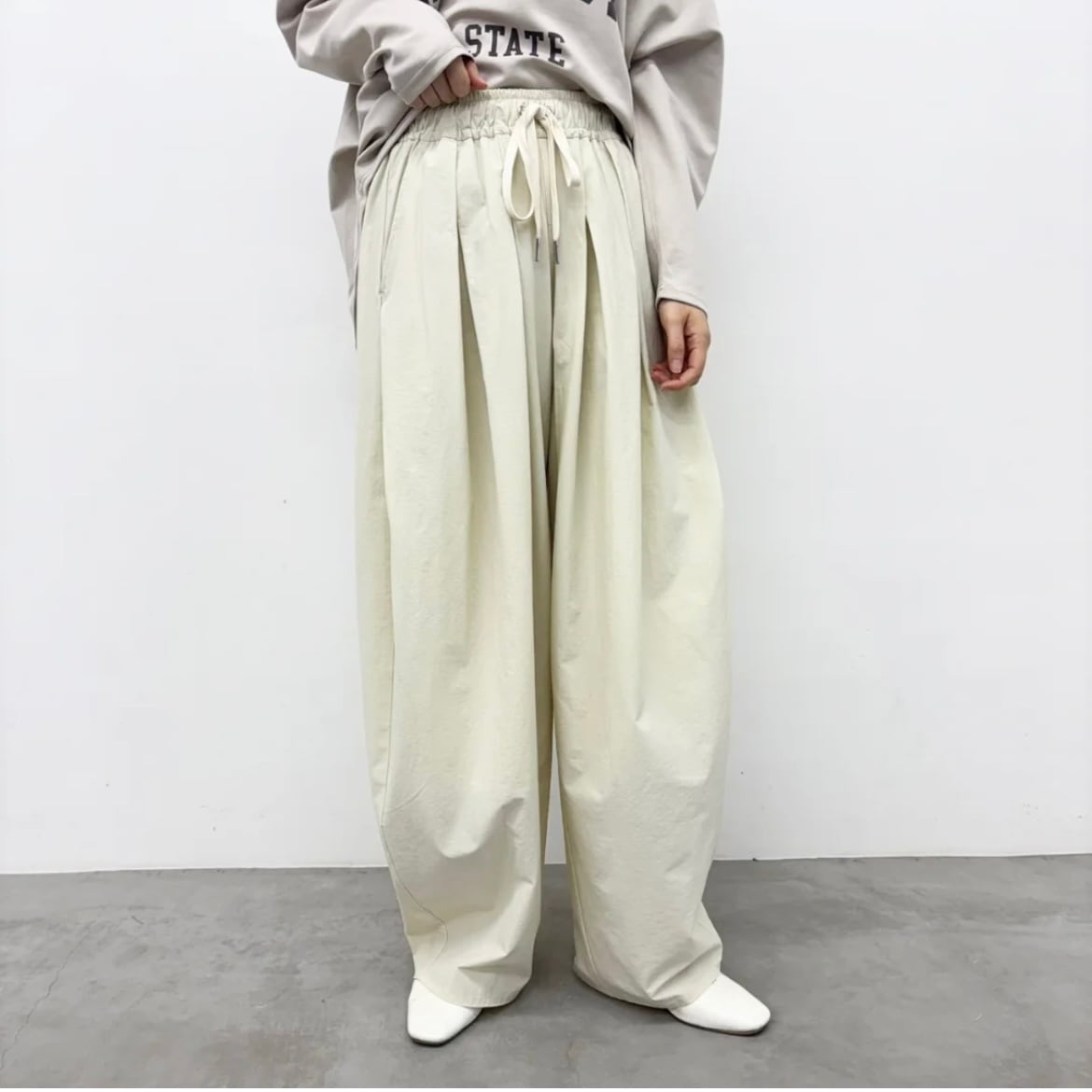 さらっと穿いてサマになるタックデザインがポイントのコクーンシルエットパンツ。