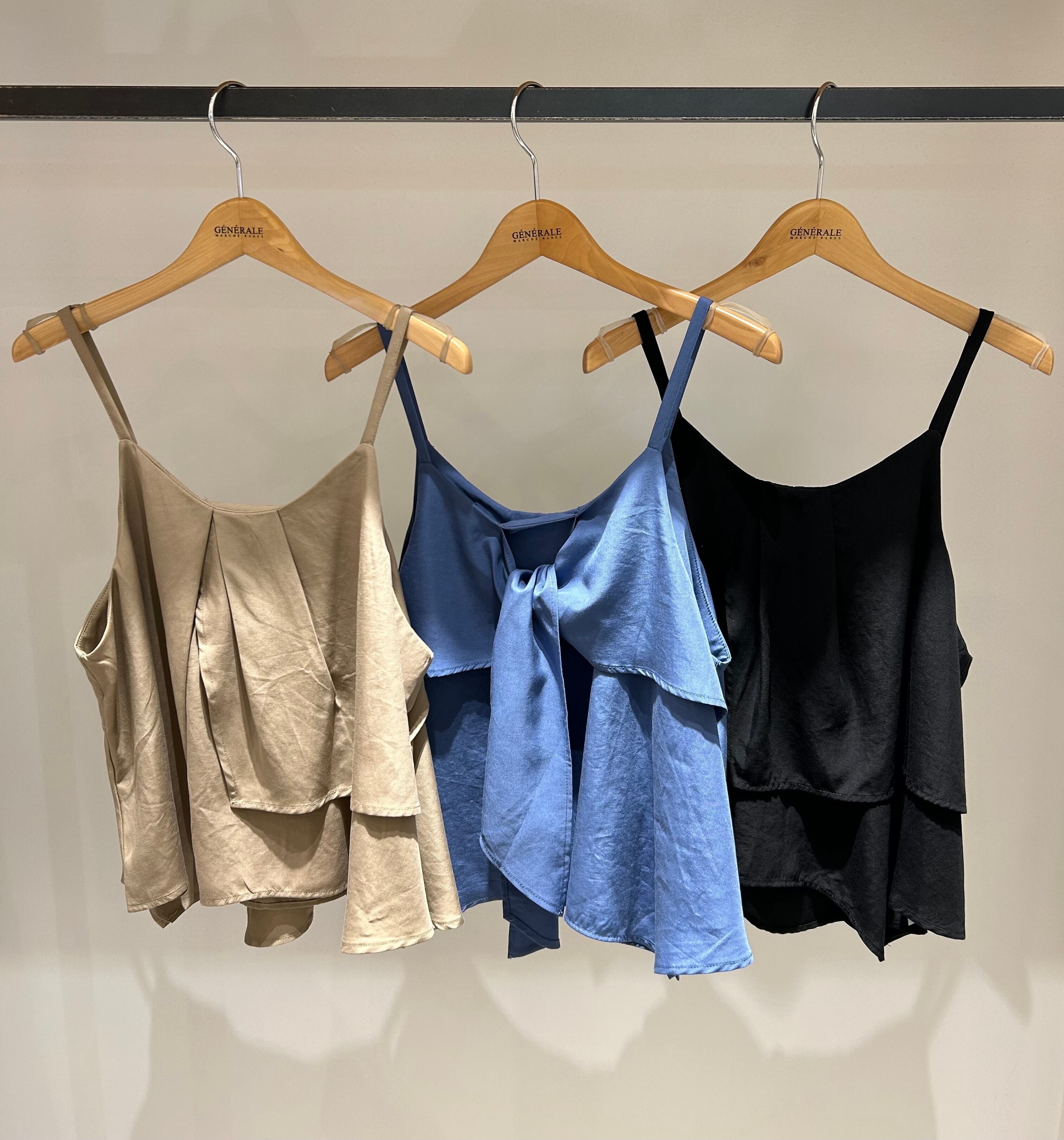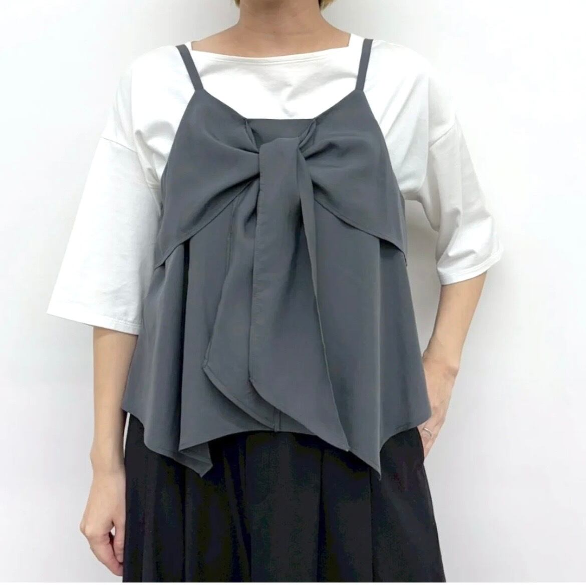 重ね着するだけで女性らしいコーディネートが完成するキャミソールビスチェ。