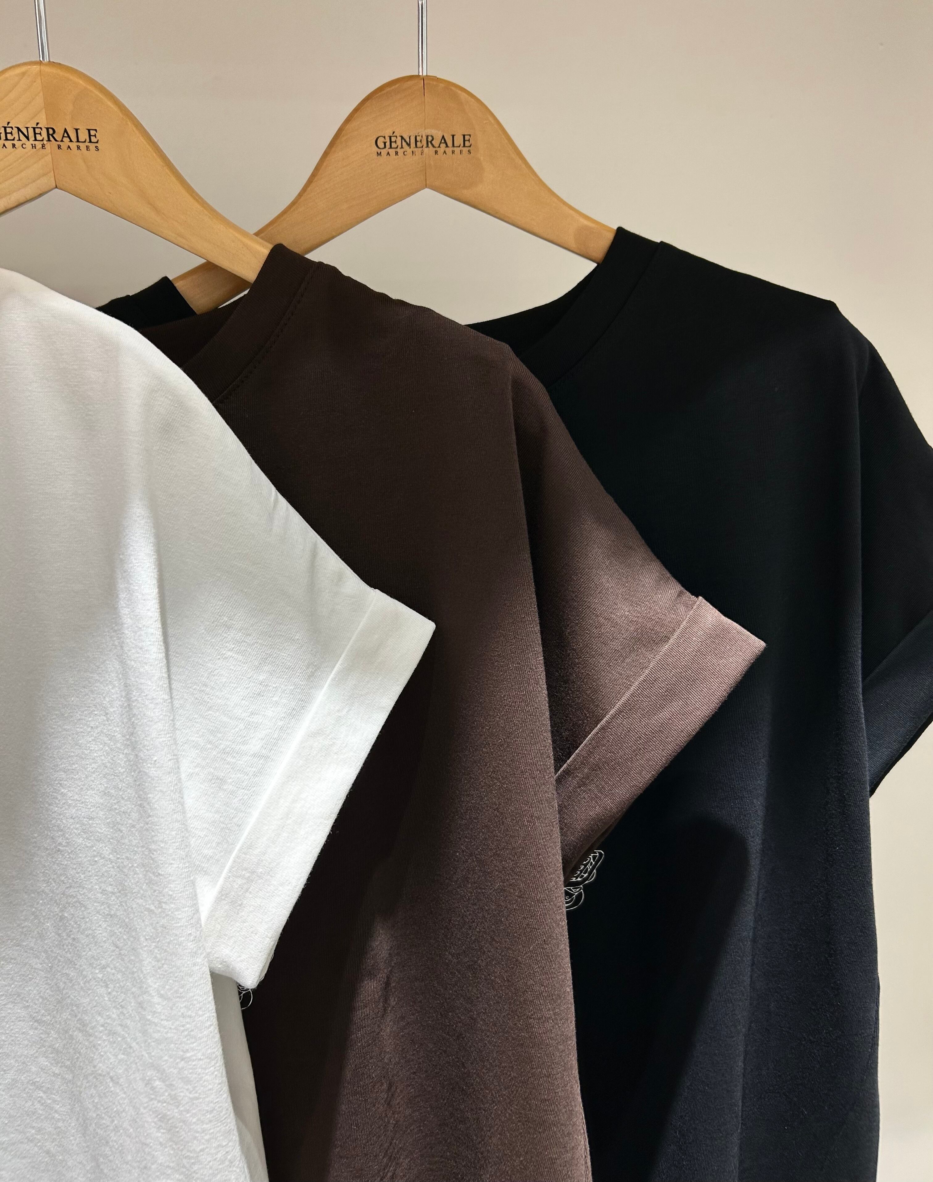サロペットやジャケットのインナーとしても着やすいサイズ感です。